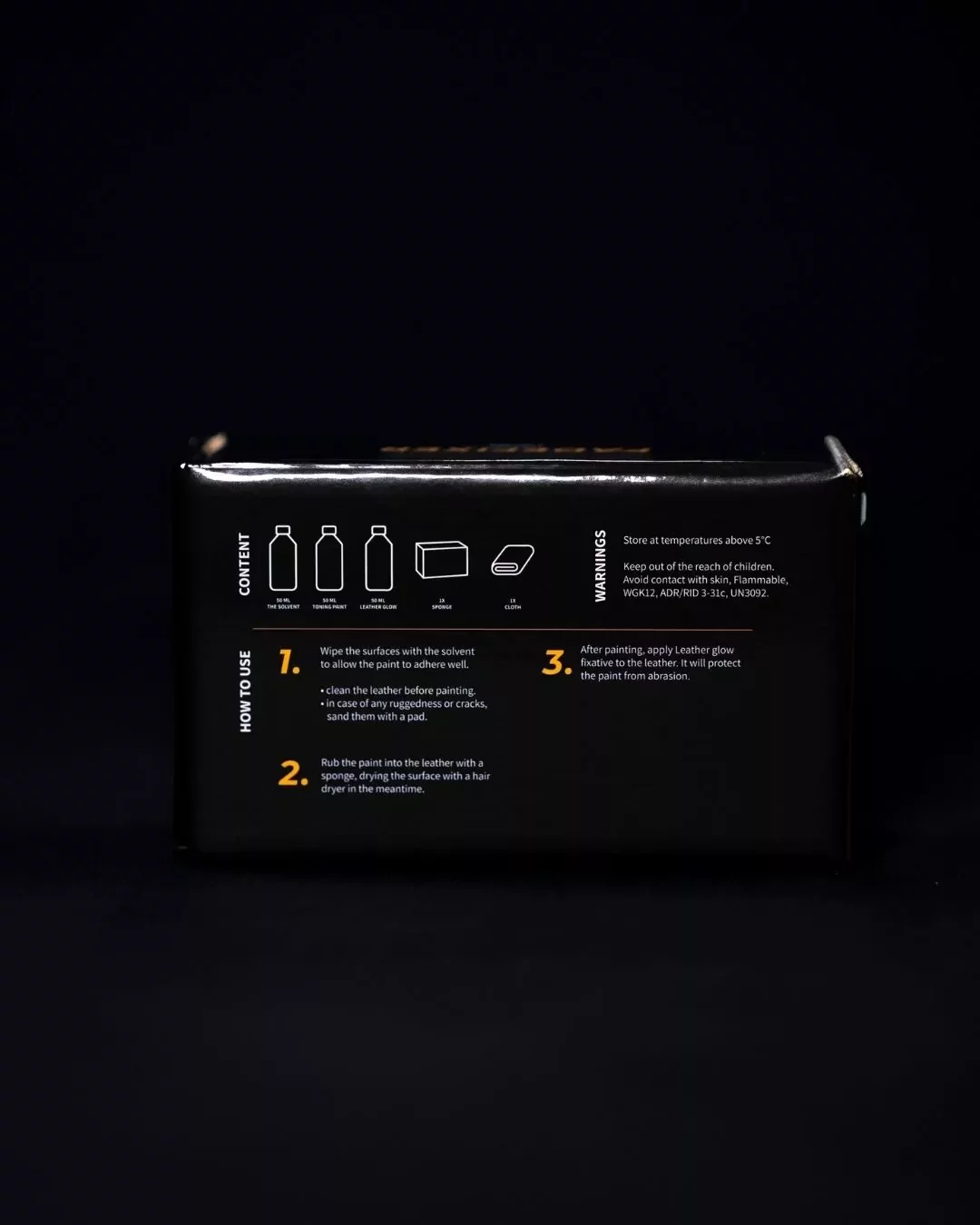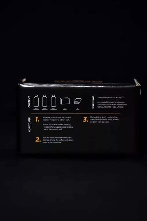 לאחר ייבוש מלא, מרחו שכבה דקה של Leather Glow באמצעות מטלית נקייה להגנה ולגימור.