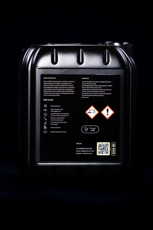 This effective cleaning solution is available for wheels and brake components. This solution successfully removes metallic contaminants and other similar dirt from surfaces. When sprayed from a distance of at least 10 cm, the cleaning solution adheres well to the target surface, producing a bleeding effect that reacts with impurities. IRON KNOCKOUT is safe to use on various surfaces, including aluminum-painted rims and lacquered surfaces.