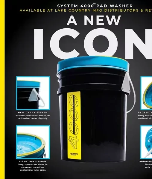 Built tough for pros, the open-top Lake Country System 4000 features a fluted wash plate and a positive displacement pump for consistent solution flow. The integrated pad agitator scrubs deep into pad fibers, restoring like-new performance in seconds.
